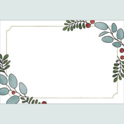ユーカリの葉とヤドリギの赤い実のイラストをあしらった、メッセージカードのテンプレートです。クリスマスカードに。HAPPY Holidays! と Thank You! の文字入りもお選びいただけます。裏面の罫線もご利用ください。はがきサイズ...