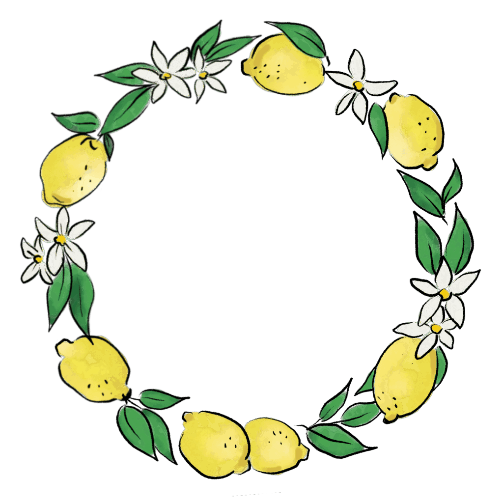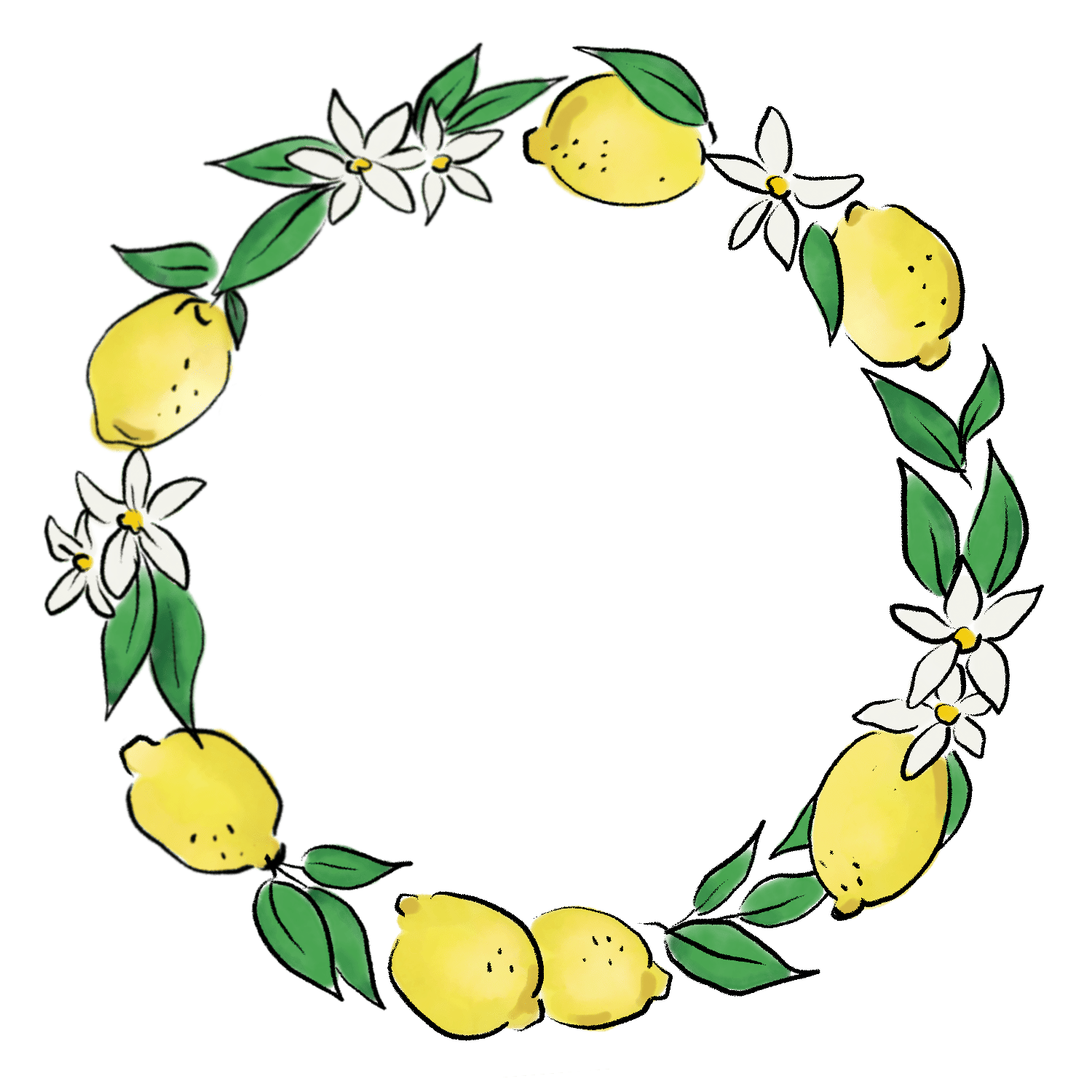 レモンとレモンの花のイラストです。円形に並べました。フレーム素材としてお使いください。フリー(無料)でダウンロードできます。