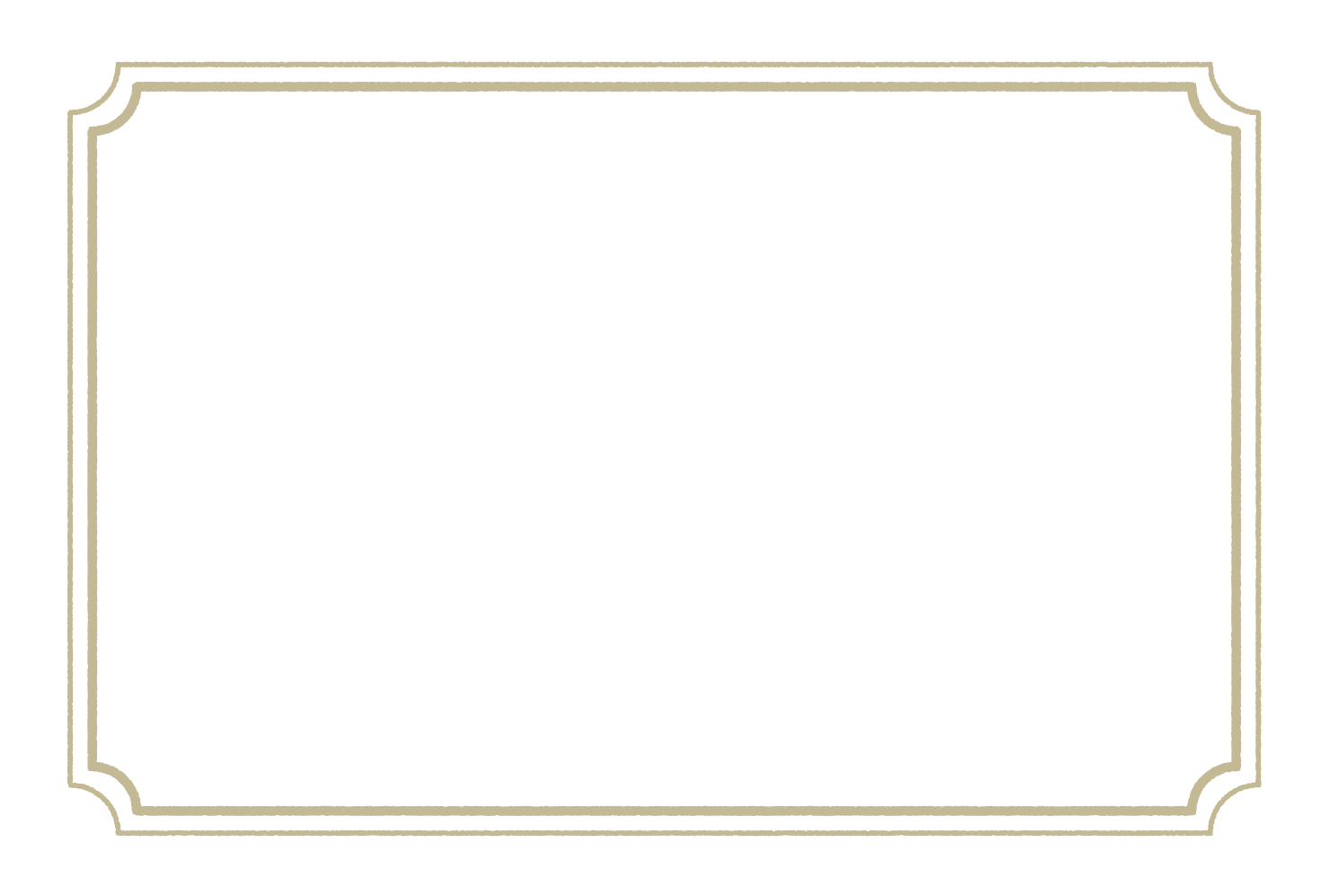 ゴールドのラフな二重線のフレームです。はがきサイズです。フレーム(枠)としてお使いください。フリー(無料)でダウンロードできます。