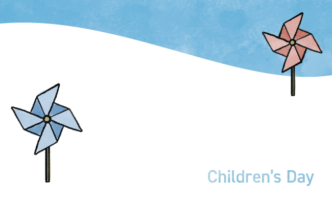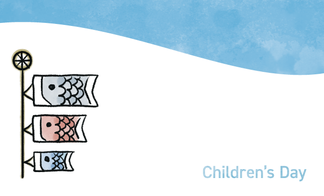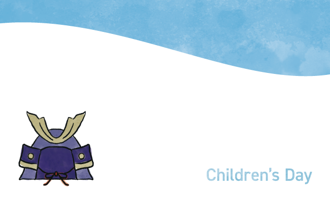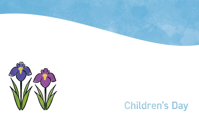 こどもの日のイラストをあしらったデザインのメッセージカードです。お祝いやギフトのメッセージに。デザインは5点からお選びいただけます。 (1)こいのぼり(鯉幟) (2)ハナショウブ(花菖蒲) (3)かぶと(兜) (4)かざぐるま(風車) (5)くも(雲)
