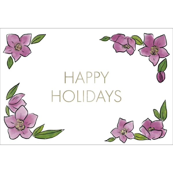 クリスマスローズのイラストをあしらった、メッセージカードのテンプレートです。クリスマスカードに。HAPPY HOLIDAYS の文字入りもお選びいただけます。はがきサイズです。