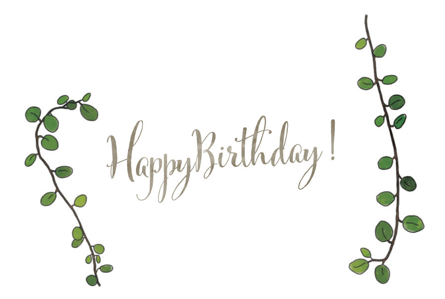 ワイヤープランツをあしらった、メッセージカードのテンプレートです。ウェディングやバースデーに。罫線あり・罫線なし・Happy Birthday!・Thank youタイプをお選びいただけます。はがきサイズです。
