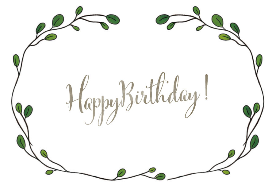 ワイヤープランツをあしらった、メッセージカードのテンプレートです。ウェディングやバースデーに。罫線あり・罫線なし・Happy Birthday!・Thank you タイプをお選びいただけます。はがきサイズです。