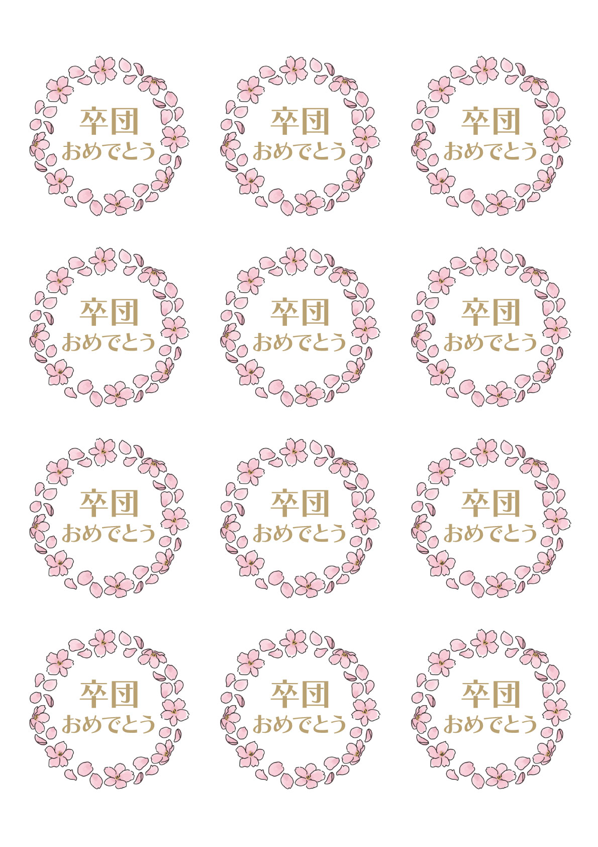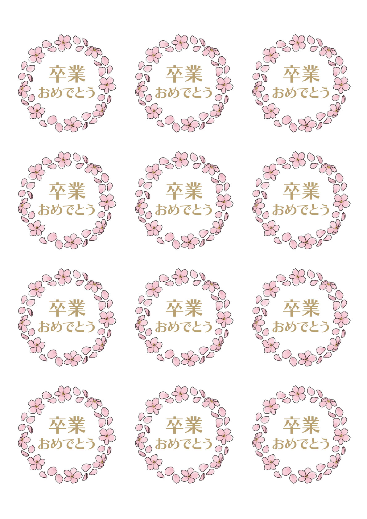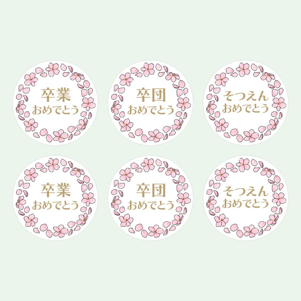 桜のリースのイラストをあしらった、丸型(直径60mm)のシールのテンプレートです。卒業や卒園のプレゼントなどにご利用ください。にエーワン[A-one]さん用紙、”ラベルシール キレイにはがせるタイプ A4 12面 丸型”に対応していますので、自宅のプリンターで簡単に出力することができます!※対応品番:31294、31394、62412、他↓