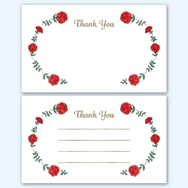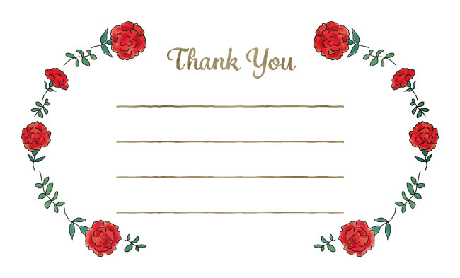 サンキューカードのテンプレート|カーネーション 季節の花のカード 2026.02.09 季節の花のカードサンクスカード行事(クリスマス・他) ギフト スポンサーリンク 赤色のカーネーションのイラストをあしらった、サンキューカードのテンプレートです。母の日はもちろん、 ギフトのメッセージカードやショップカードに。罫線あり・なしお選びいただけます。 名刺サイズです。 素材はフリー(無料)でダウンロードしてお使いいただけます。イラストを右クリックして「名前を付けて画像を保存」から画像を保存してお使い下さい。 サンキューカードのテンプレート|カーネーション|罫線なし サンキューカードのテンプレート|カーネーション|罫線あり プリントアウトでお困りの方は、STOREでカンタン高品質印刷! ※価格例:名刺サイズ 100部(上質紙)→1枚あたり約6.8円! ▶ 名刺サイズはこちらから
