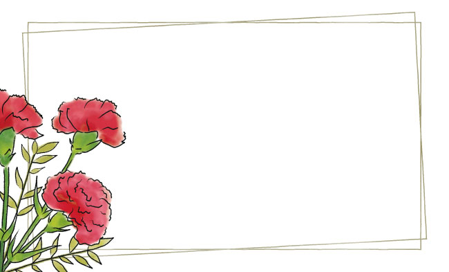 赤色のカーネーションのイラストをあしらった、サンキューカードのテンプレートです。母の日はもちろん、 ギフトのメッセージカードやショップカードに。「Thank You!」の文字入り・なしお選びいただけます。